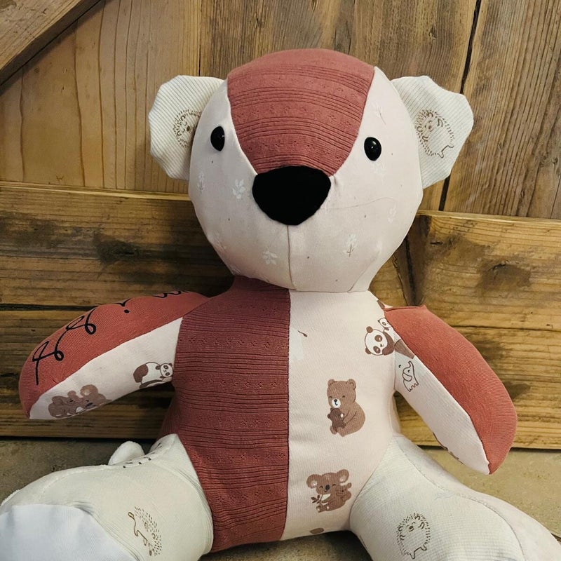 Ik heb de beer binnen gekregen, hij is echt geweldig. Hij is gemaakt van de kleertjes van mijn overleden dochtertje, ze is 12 jaar geworden. Dit is echt de perfecte manier om haar te herinneren. Helaas had ik niet al te veel kleertjes meer, maar ze hebben van lapjes stof toch een hele mooie herinnering van haar gemaakt.